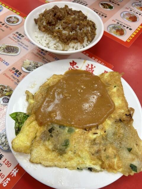 Oyster Omelet: crispy on the outside, soft inside, topped with sweet chili sauce. Google Maps